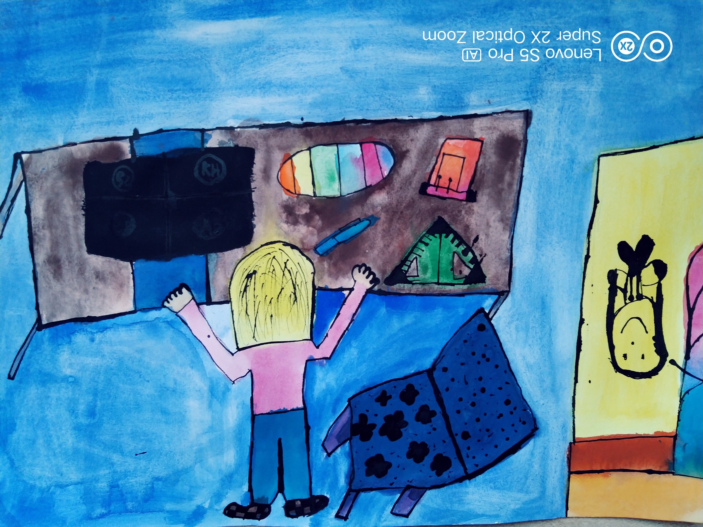 Při on-line výuce jsme před tabletem i cvičili a počítali příklady. To mě bavilo